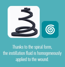 The spiral foam is specially designed for instillation therapy and provides a homogeneous distribution of the instillation fluid to the wound thanks to its form.